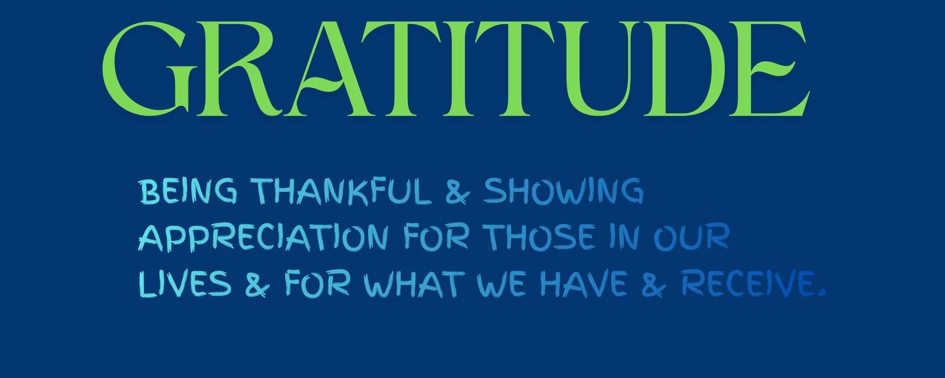 GRATITUDE | We are looking forward to focusing on Gratitude this month! One way to think about Gratitude is “choosing to appreciate the people and things in our lives.” Practicing Gratitude can increase our well-being and even our happiness! Gratitude is 1 of 3 traits we will focus on throughout the year that helps students Be Well. Across grade levels, students will be developing skills like emotion regulation, positive self-talk, and stress-management.