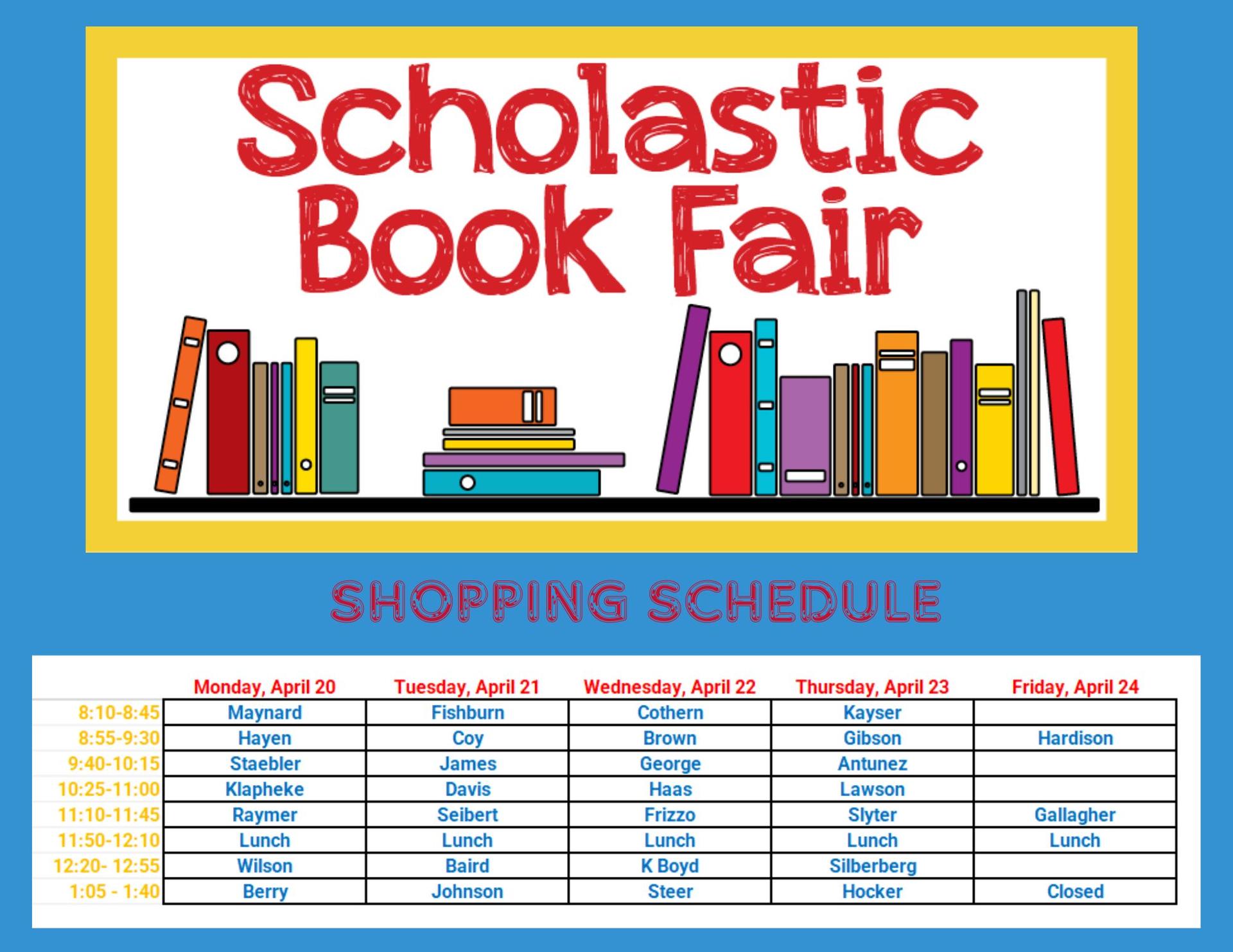 APRIL 20th - 24th | Parents please go the scholastic site to shop online and set up an ewallet for in-school shopping. Each class will have a day and a time to shop for some wonderful books. |