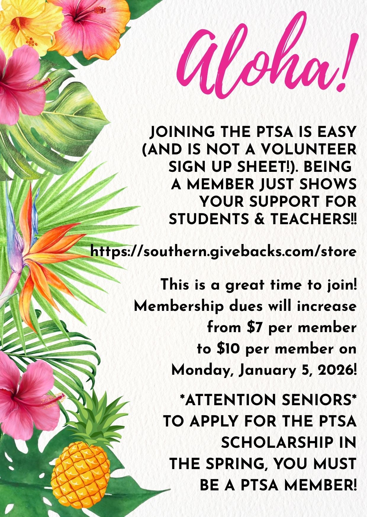 Southern has a wonderful and very dedicated PTSA. They work very hard to support students and staff in numerous ways. Join today by clicking the image below to be part of this awesome team!