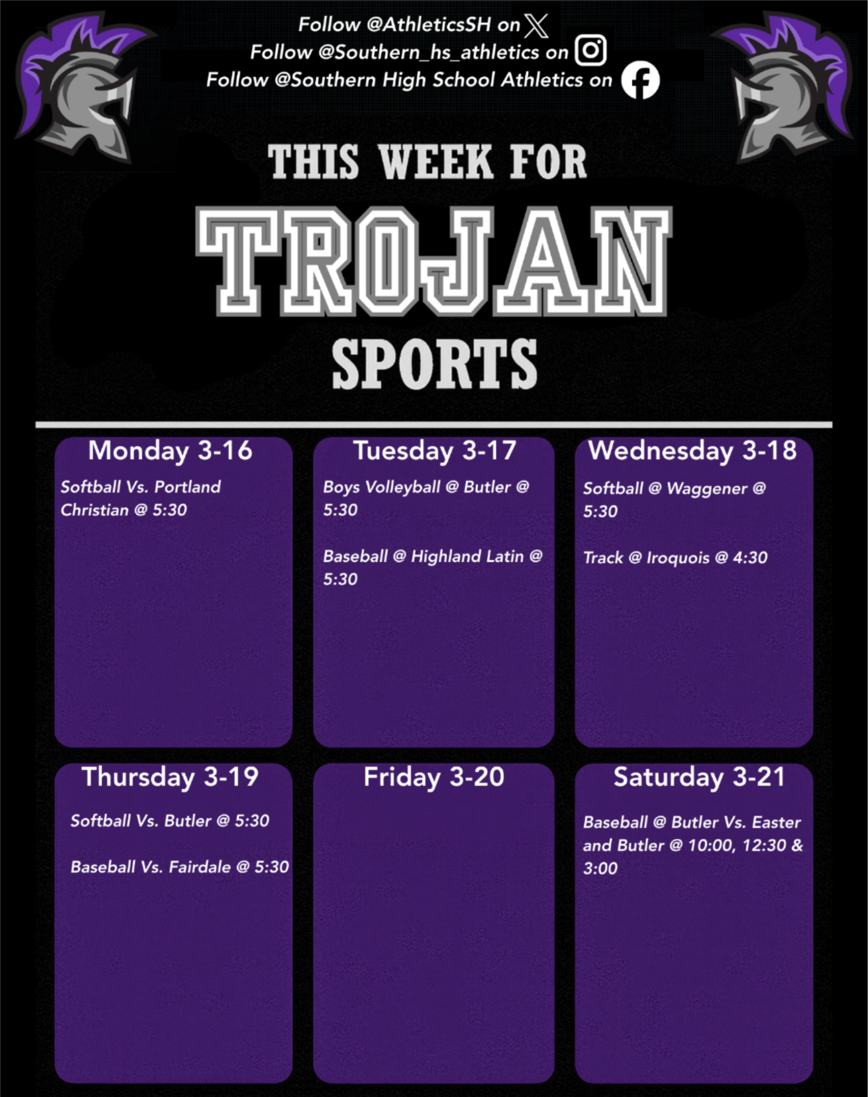Good morning, Southern Families! I want to give a shout out to our Juniors, who had the highest attendance of all grade levels last Tuesday for the SAT! Thank you for showing up and for doing your best! I also want to celebrate the inaugural season of our new Boys' Volleyball team, who won their first set of games last Tuesday evening. Spring break is right around the corner, so be sure to stay in tune with your student's grades, as we will only have 6 weeks left after Spring Break.