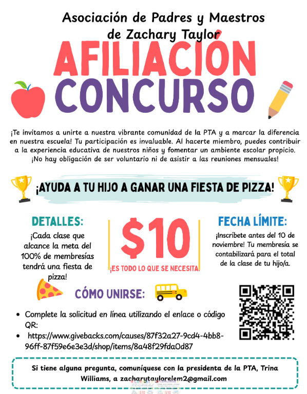 Our new PTA board is up and running and the first step is to have a membership drive! It starts now and will run through November 10. Let's grow our membership! Thank you PTA Board! |